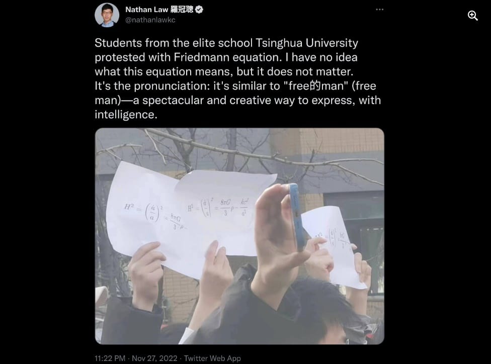 Biểu tình ‘phương trình Friedmann’, biểu tình ‘giấy trắng’ tại Trung Quốc