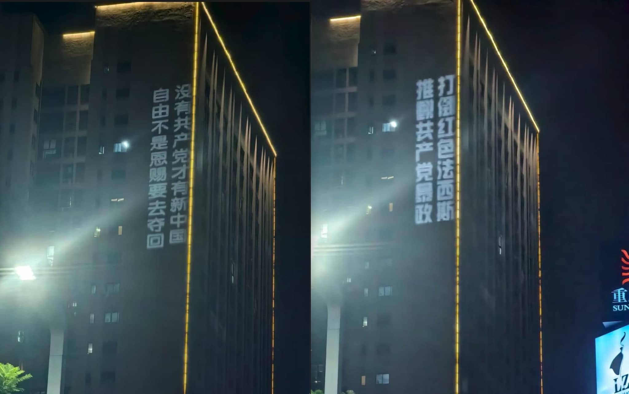 Trước thềm lễ duyệt binh 3/9 của Đảng Cộng sản Trung Quốc (ĐCSTQ), Bắc Kinh đang trong thời điểm nhạy cảm với tâm trạng hoảng loạn, đề phòng người dân còn hơn đề phòng giặc. Tối ngày 29/8, trên mặt ngoài của một tòa nhà ở phố Tây, khu đại học Trùng Khánh, xuất hiện một loạt khẩu hiệu phản cộng sản được chiếu bằng máy chiếu cỡ lớn. Trước khi cảnh sát tìm thấy thiết bị chiếu đặt tại phòng khách sạn đối diện tòa nhà, 4 nhóm khẩu hiệu lần lượt được trình chiếu, kéo dài hơn 50 phút.