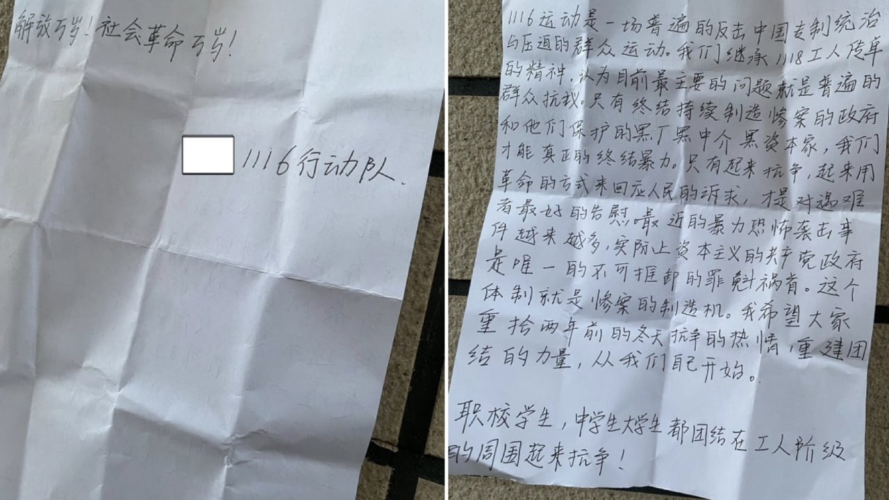 “Chúng tôi quyết định không làm kẻ sát nhân tiếp theo, chứ đừng nói đến làm nô lệ cho chính phủ, nên các bạn cùng lớp đã tổ chức trong ký túc xá và phát tờ rơi viết tay, tài liệu và giấy trắng, mọi người trong chốc lát đều vô cùng phẫn nộ. Tôi hy vọng các bạn có thể chia sẻ nó trên Twitter (hiện này là X) của bạn và truyền cảm hứng cho nhiều người hơn để mọi người cùng đả đảo ĐCSTQ, xây dựng một cuộc sống mới!!!!!”