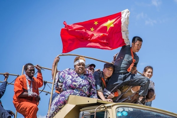 Mỉa mai hơn nữa còn là cảnh Ngô Kinh tay lồng lá cờ Trung Quốc, đưa đoàn người được giải cứu đi qua vùng chiến sự, với một câu nói chạy qua: “Khi bạn gặp nguy hiểm ở nước ngoài, đừng từ bỏ. Hãy nhớ, phía sau bạn có một tổ quốc hùng mạnh”.