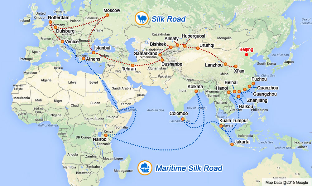 Một Con Đường chỉ “Con đường Tơ lụa Hàng hải Thế kỉ 21″, bắt nguồn từ Phúc Châu (Fuzhou), kết nối các thành phố ven biển từ Hà Nội, Jakarta, Kuala Lumpur, Kolkata, Nairobi, trước khi kết nối với “Vành đai Tơ lụa Kinh tế” ở Venice. Để chuẩn bị cho việc hình thành «Con đường Tơ lụa Hàng hải», kế hoạch sẽ là xây dựng các hải cảng và các cơ sở hậu cần đường thủy từ Thái Bình Dương sang biển Baltic. Mà ở Việt Nam đó sẽ là việc xây dựng hệ thống đường cao tốc nối các tỉnh phía Nam của Trung Quốc với Hà Nội và các hải cảng phía Bắc, đồng thời nâng cấp hoặc xây mới các hải cảng ở vùng này.