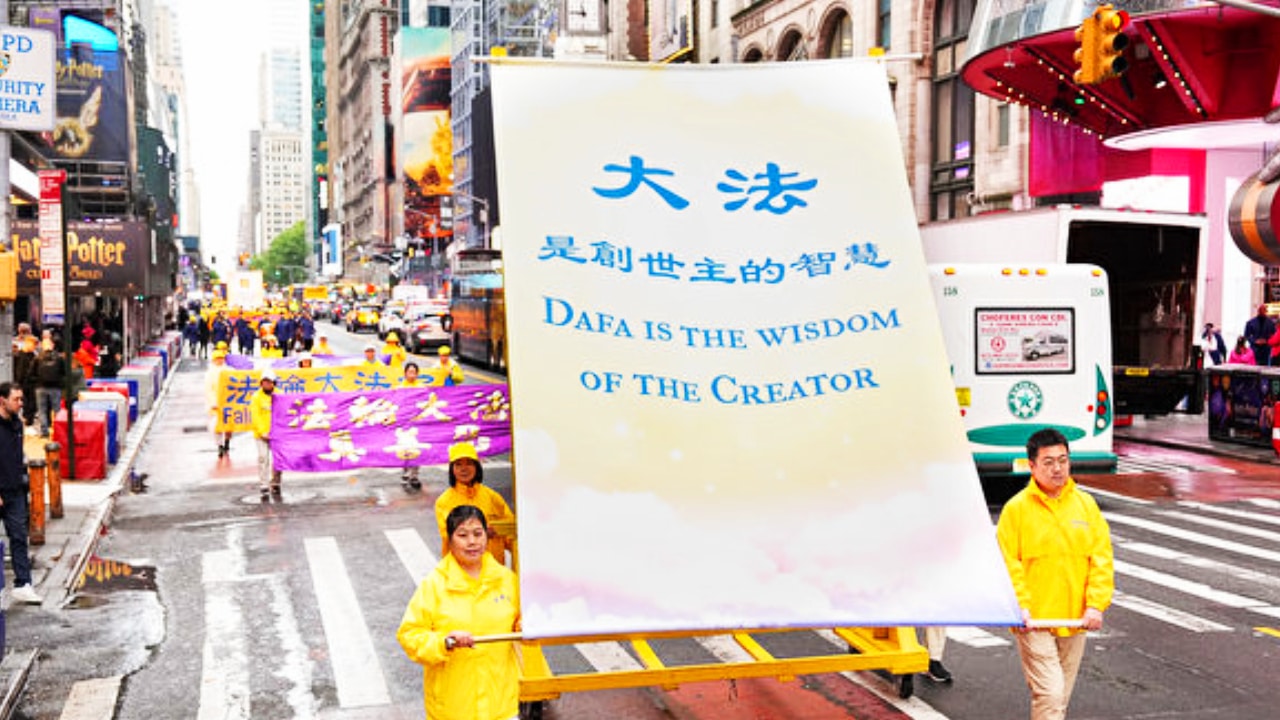 Ngày 10/5/2024, các học viên Pháp Luân Công tổ chức cuộc đại tuần hành ở Manhattan để kỷ niệm 32 năm hồng truyền của Pháp Luân Đại Pháp. (Ảnh: Đới Binh/Epoch Times)