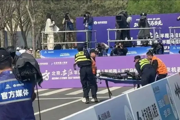Hai robot ngã trên đường đua bán marathon Trung Quốc, hình ảnh gây tranh cãi