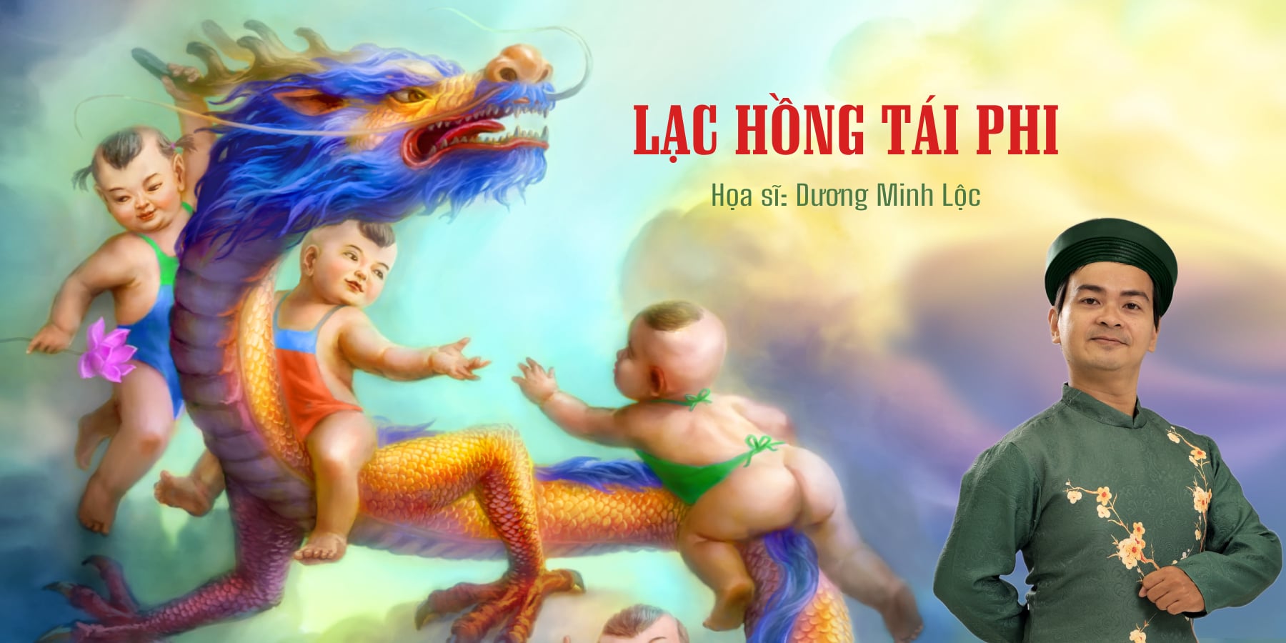 Bức tranh tôi vẽ có tên là “Lạc Hồng tái phi”, nghĩa là con cháu Lạc Hồng luôn tự hào về nguồn gốc cao quý con Rồng cháu Tiên, nếu có thể từ cội nguồn đạo đức và văn hoá truyền thống ông bà mà tu dưỡng nhân cách thì có thể một lần nữa thăng hoa trở lại cảnh giới sống cao quý của mình.