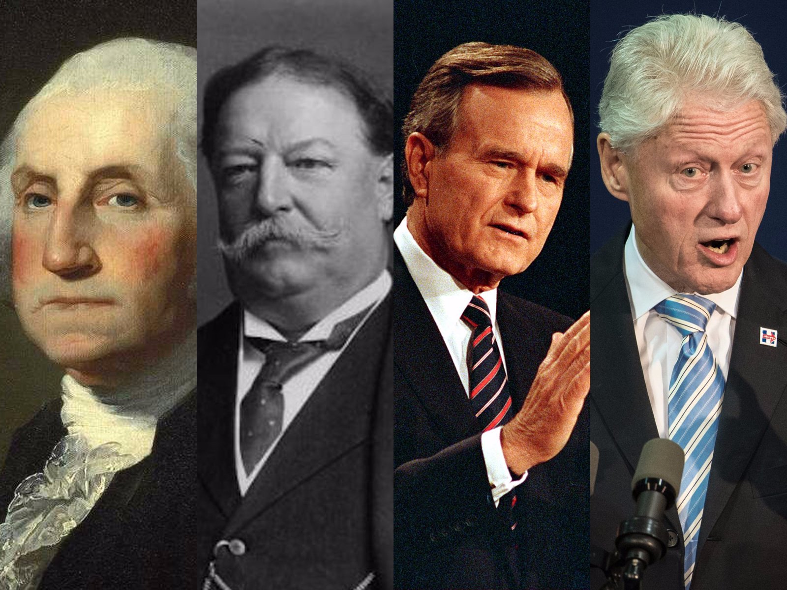 Các cựu Tổng thống Hoa Kỳ George Washington, William Howard Taft, George H.W. Bush, và Bill Clinton. (Ảnh: Wikimedia Commons; Lennox McLendon; Sean Rayford)