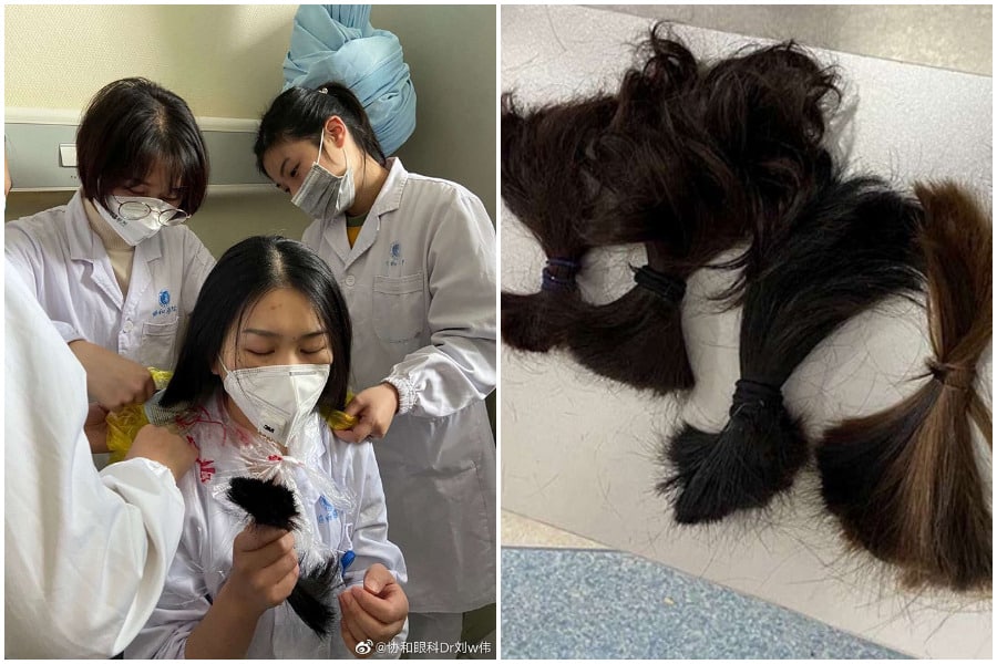 Các y tá cắt tóc cho nhau để chuẩn bị mặc đồ bảo hộ khỏi virus corona