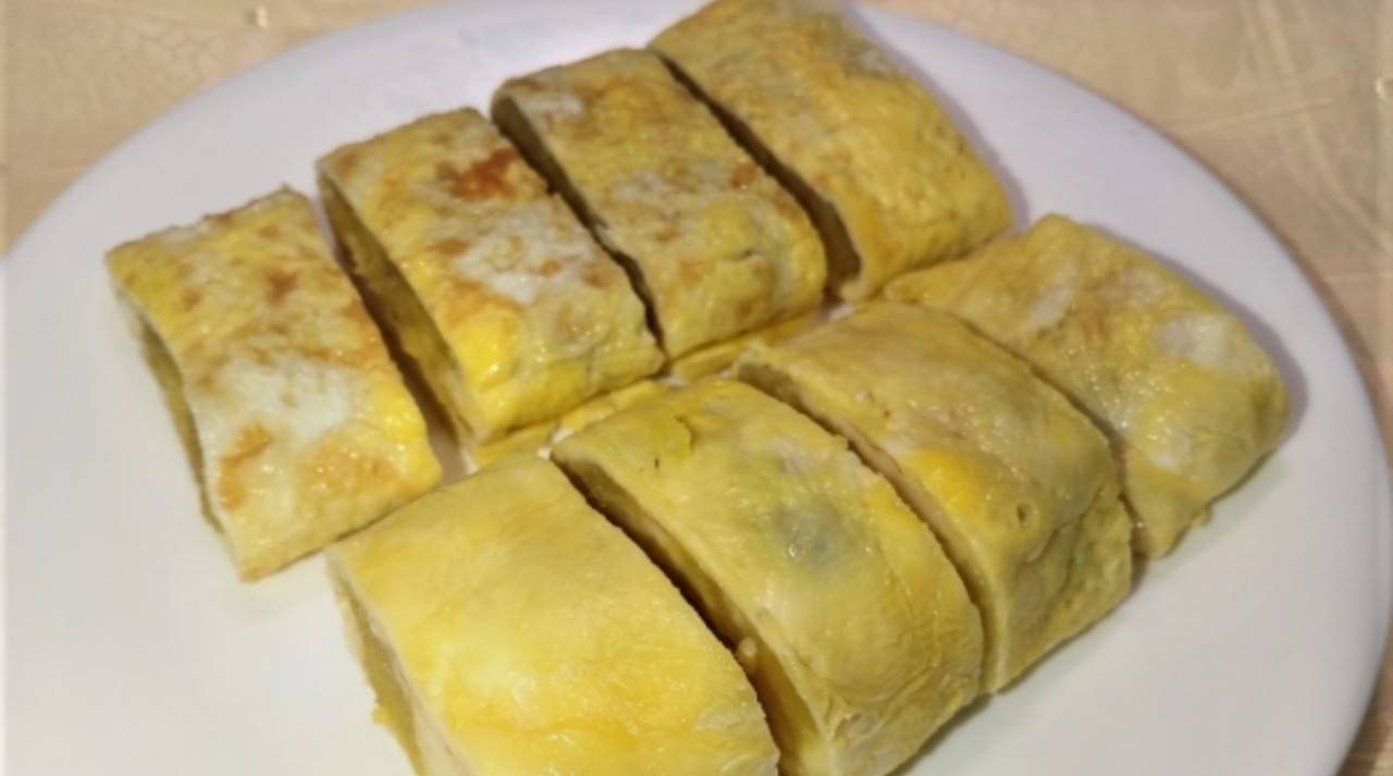 4. Sau đó chiên một lúc cho đến khi phô mai tan chảy. Nhớ sử dụng lửa nhỏ trong suốt quá trình. Khi trứng cuộn chín vàng, cắt thành khúc vừa ăn và bày ra đĩa.