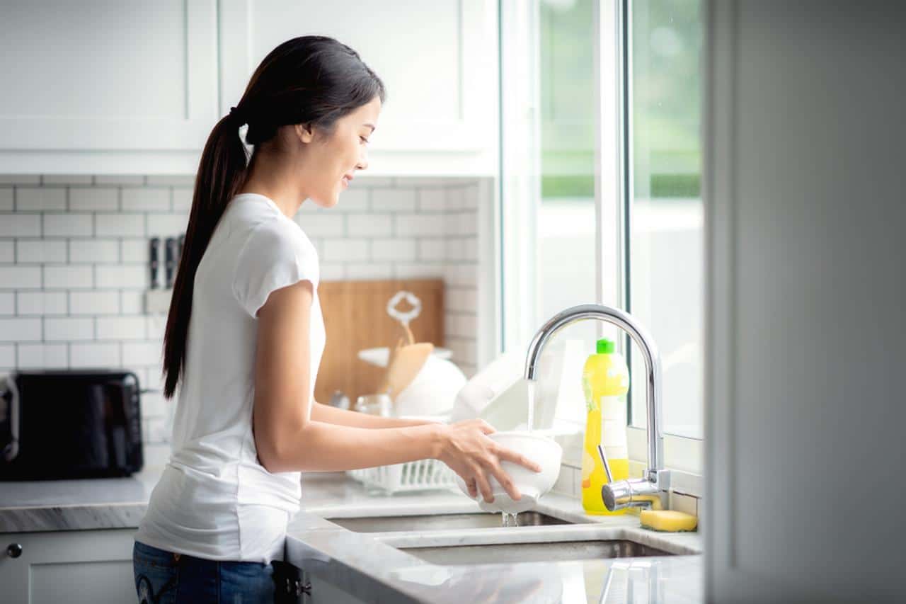 Và khi rửa bát đĩa, hãy nhớ rửa sạch bằng nước nóng. Điều này không chỉ loại bỏ chất tẩy rửa còn sót lại kỹ hơn mà còn khử trùng tốt hơn.