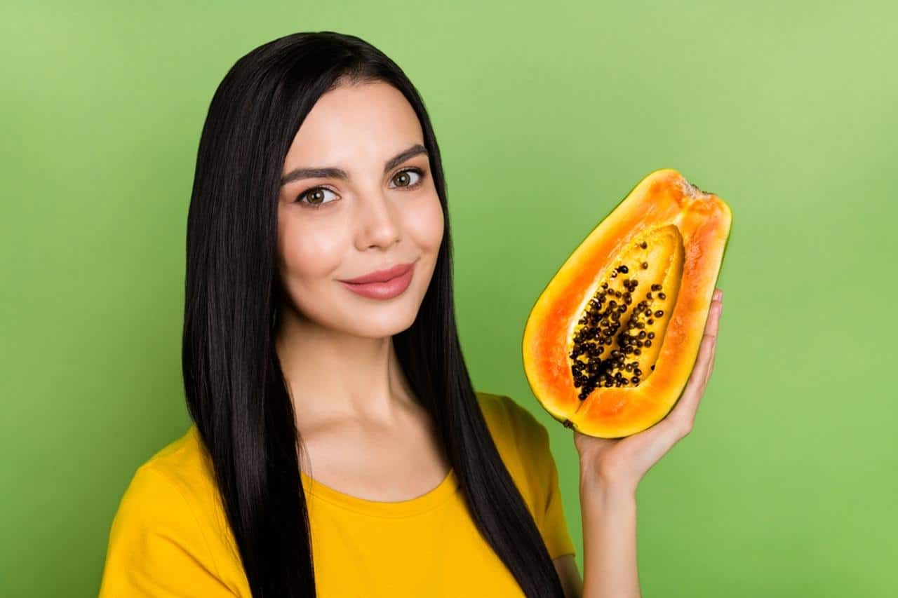Đu đủ được mệnh danh là “trái trường thọ” vì nó rất giàu enzyme tương tự như hormone tăng trưởng của con người. Ăn nhiều đu đủ không chỉ giúp bạn trẻ lâu mà còn cung cấp nhiều rất nhiều dưỡng chất quý như vitamin C, sắt, kali, canxi, carotene và lutein. Những chất dinh dưỡng này có thể loại bỏ các protein cũ và chất thải, đồng thời tham gia vào quá trình làm sạch sâu, giúp cải thiện vấn đề rụng tóc.