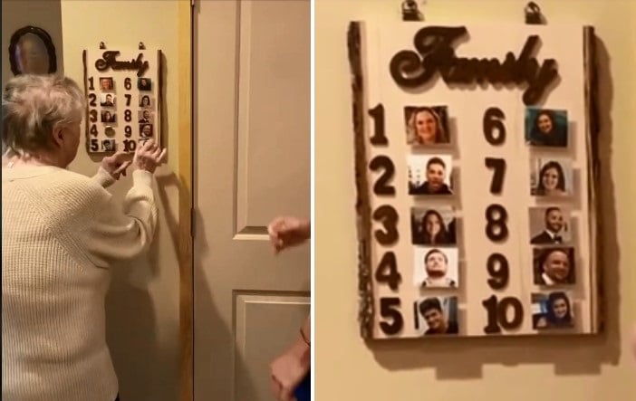 Trên tường nhà bà có một tấm bảng gồm 10 miếng nam châm dán hình các cháu. Mỗi khi tâm tình bà thay đổi là những viên nam châm này cũng phải chịu cảnh xáo trộn vị trí theo.