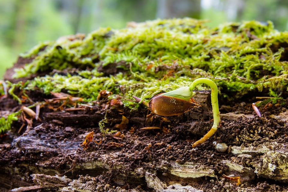 Hai hạt giống nằm cạnh nhau trên một mảnh đất màu mỡ.