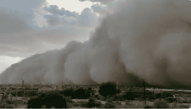 Cơn bão cát bụi này đã bao phủ một vùng rộng lớn, biến bầu trời thành màu nâu và che lấp ánh nắng mặt trời. Các nhân chứng nói rằng trận bão cát đã biến khu vực này “từ ngày sang đêm”.