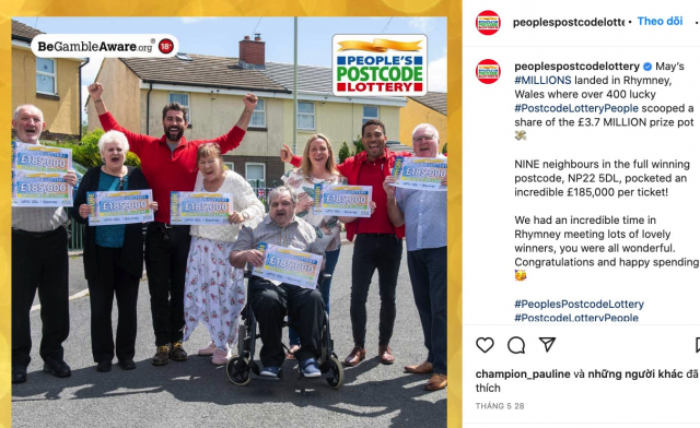 Họ cùng tham gia một chương trình gọi là Xổ số Mã Bưu điện của Nhân dân (People’s Postcode Lottery). Người chơi sẽ phải đăng ký bằng mã bưu điện và trả 10 bảng Anh một tháng. Và may mắn trúng thưởng lần này đã thuộc về những người dân sống trong khu vực có mã bưu chính là “NP22 5DL”.