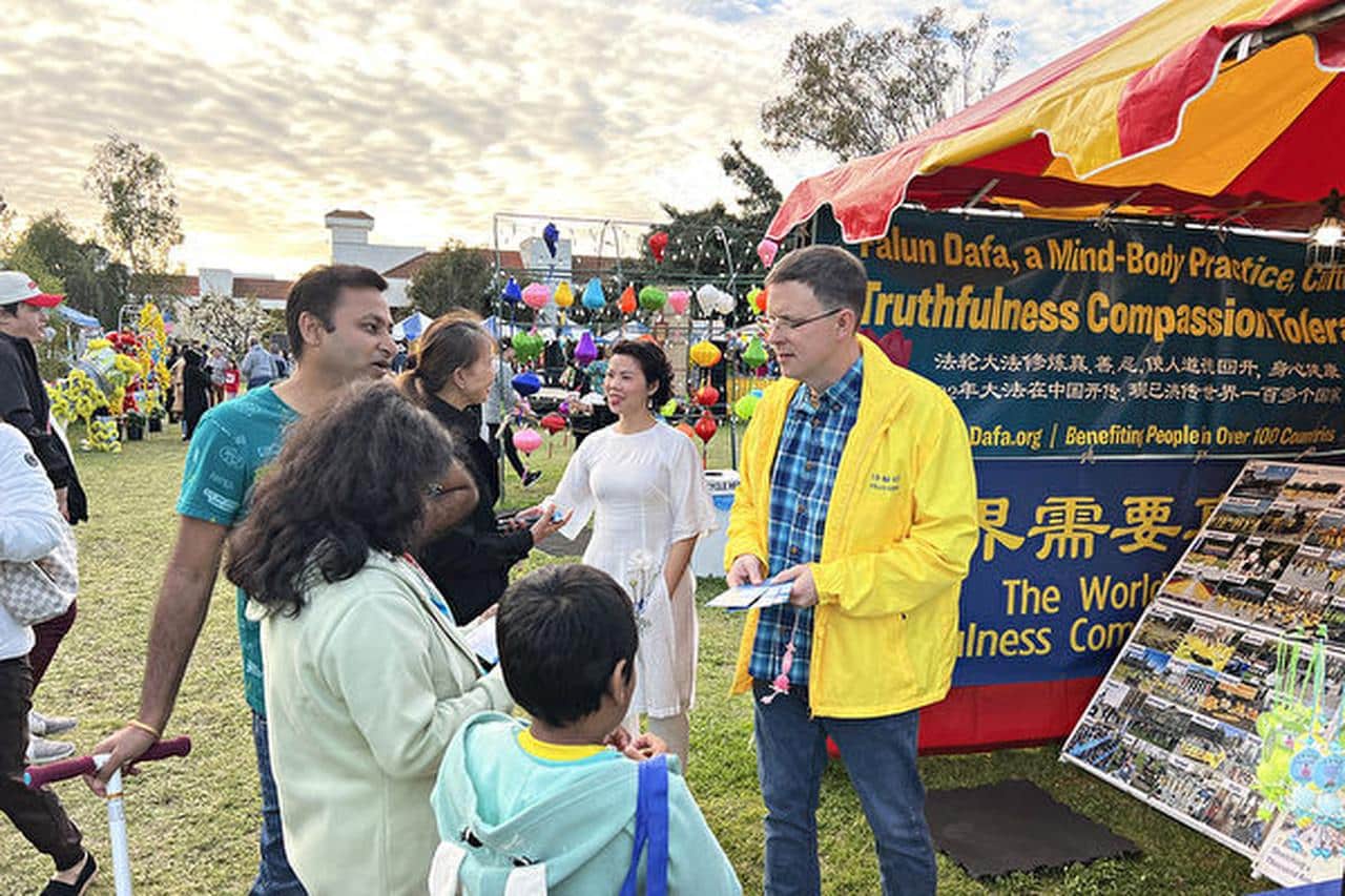 Anh Mike còn kể lại một câu chuyện nhỏ rất thú vị như thế này: Một ngày vào tháng 09/2023, lần đầu tiên anh tham gia tổ chức triển lãm nghệ thuật “Chân – Thiện – Nhẫn” tại công viên Balboa ở San Diego. Khi đó anh mới tu luyện được ba tháng.