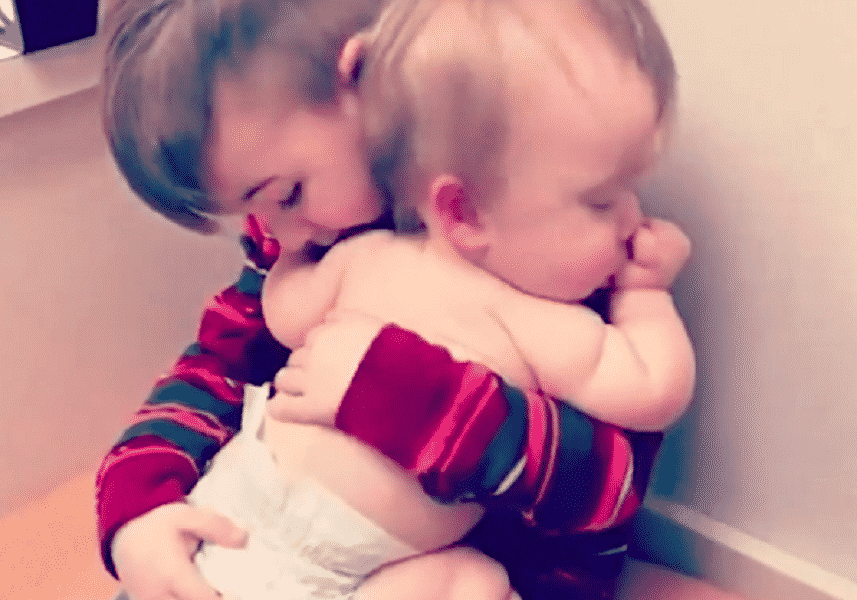 Khi hai anh em đang ngồi trên sàn nhà, thấy em gái khó ngủ, cậu bé John đã nhẹ nhàng bế em, ôm chặt em và chầm chậm đung đưa người dỗ dành em.