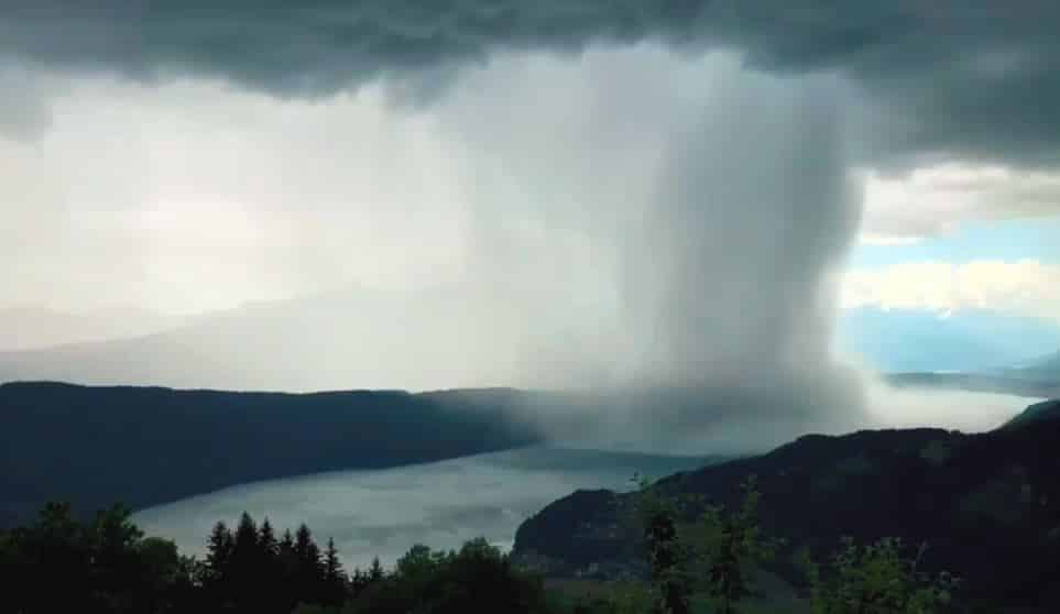 Cảnh tượng “bom mưa” ngoạn mục được quay timelapse ở hồ Alpine