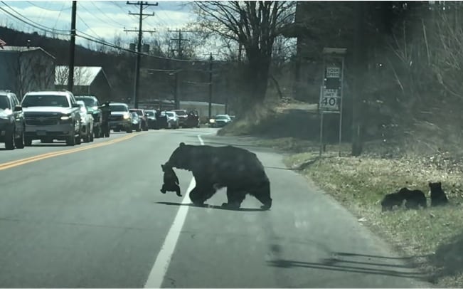 Theo Epoch Times, cảnh tượng hài hước này đã diễn ra trên một đoạn đường đông đúc có tốc độ giới hạn là 40 dặm một giờ tại thị trấn Winchester. Khi đó, cảnh sát đã yêu cầu tất cả xe cộ phải dừng lại để những chú gấu đen qua đường được an toàn.