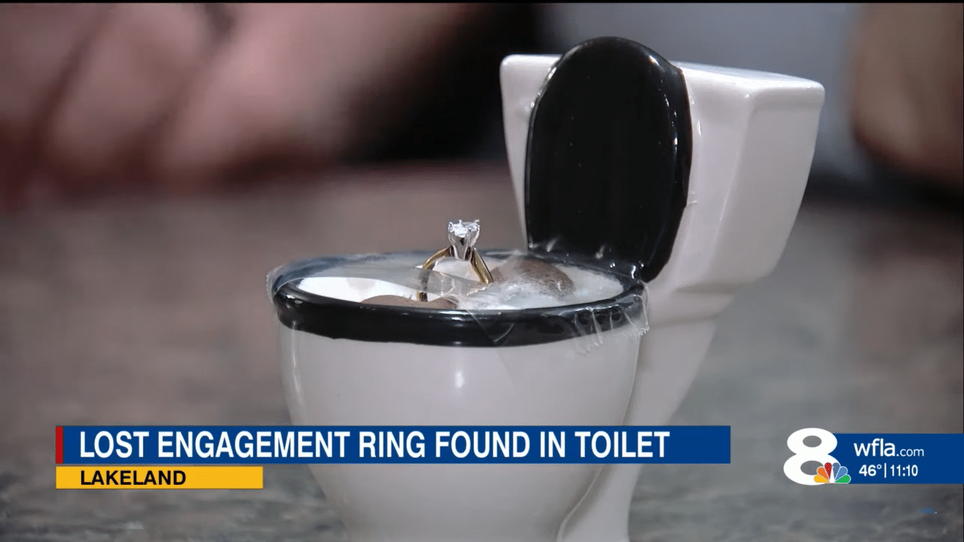 Khi làm rơi một vật nhỏ xíu xuống bồn cầu, có lẽ không ai trong chúng ta hy vọng sẽ tìm lại được. Thế nhưng chiếc nhẫn đính hôn của cô Shaina Day đã tìm được cách để về với chủ nhân.