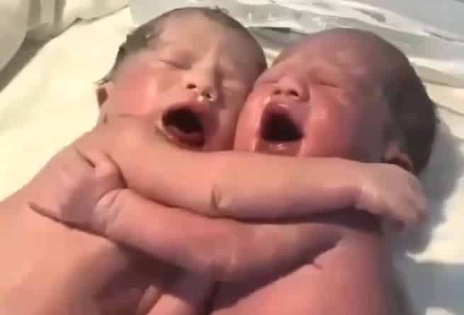 Ngay sau khi sinh, cặp đôi đã dùng 2 tay ôm lấy nhau và không còn khóc nữa. Chúng dường như đang an ủi, quan tâm lẫn nhau.