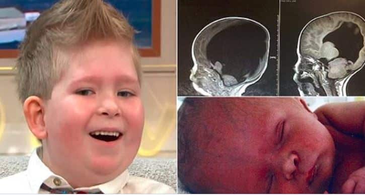 Bé Noah Wall sống tại Cumbria ở Anh, khi còn ở trong bụng mẹ, bé được chẩn đoán mắc chứng gai cột sống và não úng thủy (tràn dịch não). Khi đó, các bác sĩ nói với bố mẹ của bé rằng nếu sinh ra bé sẽ chỉ có “nửa khối não”, và sau 5 lần bác sĩ đề nghị “dừng thai”, họ đã 5 lần kiên quyết từ chối.