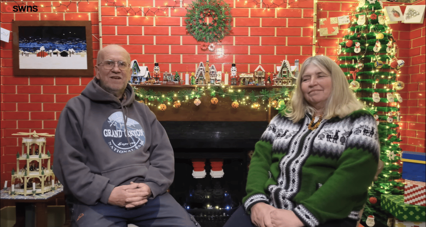 Cứ đến dịp giáng sinh, ông Mike Addis (64 tuổi) và vợ của ông, Catherine Weightman (59 tuổi) lại cùng nhau xây dựng một mô hình Lego khổng lồ. Năm nay, cặp đôi đến từ Huntingdon (Anh Quốc) đã dựng lên một bức tường gạch Lego dài 3,6 mét, cây thông Noel, lò sưởi và nhiều mô hình nhỏ khác.