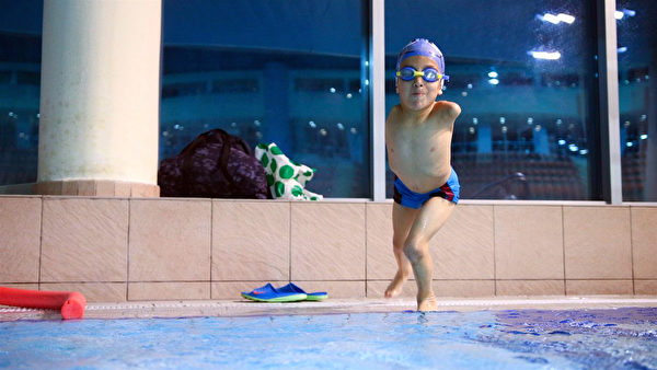 Hồ bơi ngập tràn tiếng cười của các em nhỏ. Do không có hai cánh tay, bé Ismail phải cố gắng luyện tập động tác chân, thế nhưng cậu bé không hề sợ hãi và luôn mỉm cười sau khi hoàn thành được những gì mà huấn luyện viên chỉ dẫn.