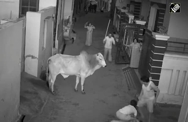 Vụ việc này xảy ra tại một khu dân cư ở bang Haryana của Ấn Độ vào ngày 28/9. Khi đó có một người phụ nữ cao tuổi đang đi bộ bên trong đường hẻm thì một con bò đực đột nhiên lao về phía bà và húc khiến bà bị văng sang bên đường rồi ngã xuống đất.