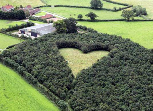 Anh Andy Collett đến từ thị trấn Wotton-under-Edge rất yêu thích khinh khí cầu. Vào năm 2012, khi anh đang bay trên bầu trời ở quận Gloucestershire, bỗn nhiên anh nhìn thấy “một cảnh đẹp ngoạn mục làm mê đắm lòng người” – một bãi cỏ hình trái tim dài hơn 70 m.