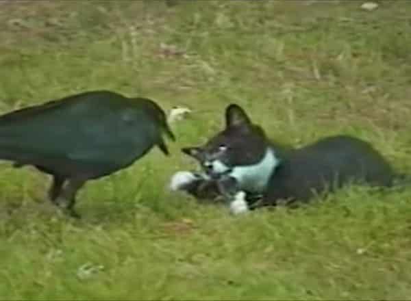 Vào năm 1999, vợ chồng Ann và Wally Collito sống ở North Attleboro thuộc tiểu bang Massachusetts (Mỹ) phát hiện thấy trong vườn nhà mình có một con mèo nhỏ màu đen điểm trắng. Con mèo lang thang phải tự tìm thức ăn để duy trì sự sống. Nhưng ông bà còn chưa kịp bước ra xem thì có một con quạ đã đến… nhận trách nhiệm chăm sóc.
