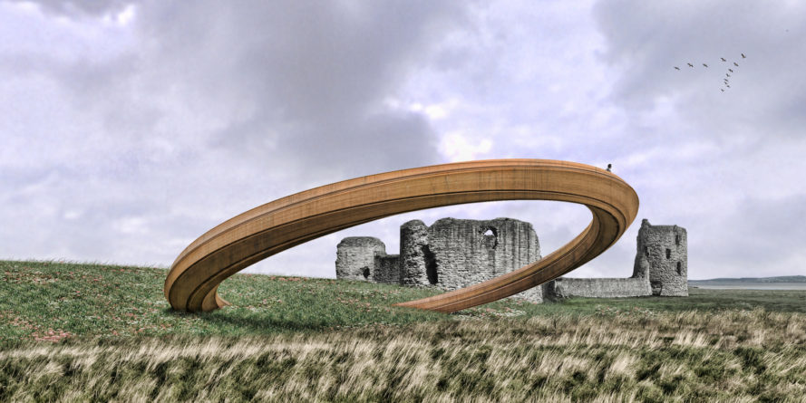 Nói một cách nôm na thì cảnh quan xứ Wales mang một vẻ đẹp đậm chất sử thi. Để tôn vinh thiên nhiên và lịch sử huy hoàng của mảnh đất cổ tích này, công ty kiến trúc George King Architects đã thiết kế chiếc Vòng Sắt, một công trình mô phỏng vương miện thép gỉ khổng lồ với một phần chìm vào trong đất và được đặt bên cạnh lâu đài Flint.