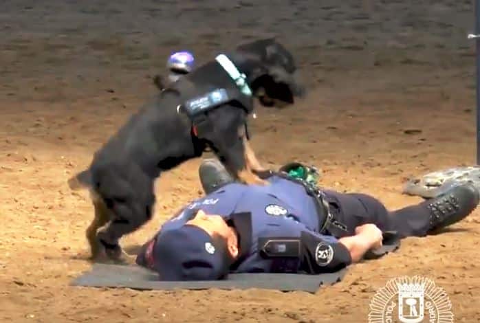 “Heroica” actuación de nuestro #Compañerosde4Patas Poncho, que no dudó ni un instante en “salvar la vida” del agente, practicando la #RCP de una manera magistral.