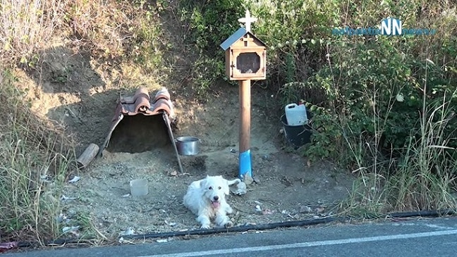 Chú chó nhỏ màu trắng không rõ tên này đã sống trong một năm rưỡi tại một nơi bên đường gần thị trấn Nafpaktos của Hy Lạp. Người dân địa phương đã thử mang nó về nuôi, nhưng nó vẫn chạy trốn và quay lại nơi này.