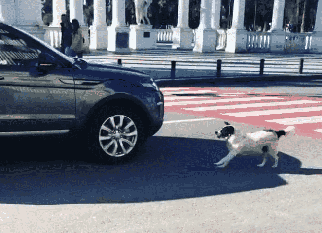 Chú chó lang thang chặn xe để các em nhỏ sang đường