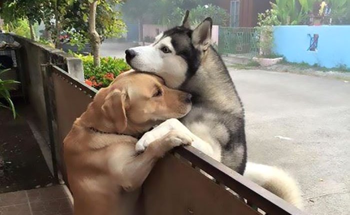 Chú chó vượt tường rào để đến ôm ‘bạn thân’ hàng xóm