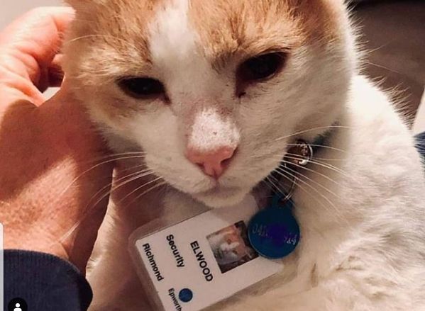 Trong suốt 1 năm qua, hầu như mỗi ngày chú mèo vằn có tên Elwood này đều đi loanh quanh Bệnh viện Epworth. Mới đây, Elwood vừa được nhận làm bảo vệ tại bệnh viện này, nó vừa giúp “giữ trật tự và an toàn”, lại vừa nhận được sự yêu mến của mọi người.
