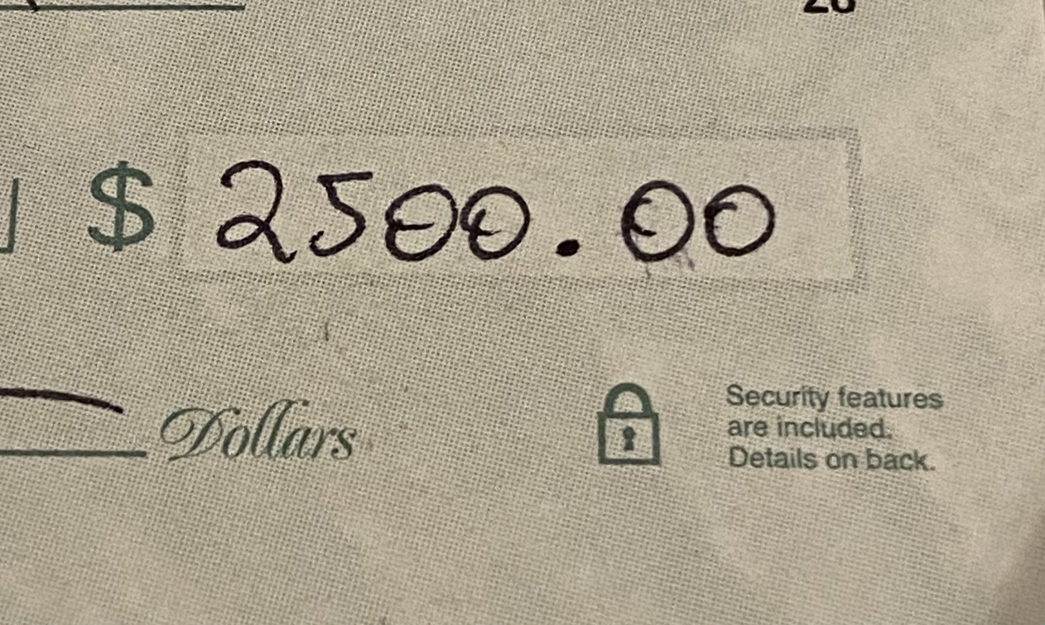 Anh Chris đã chia sẻ trên Facebook về sự việc này kèm theo bức ảnh chụp lại lá thư và tờ chi phiếu 2.500 đô la được chủ nhà gửi đến cho anh.