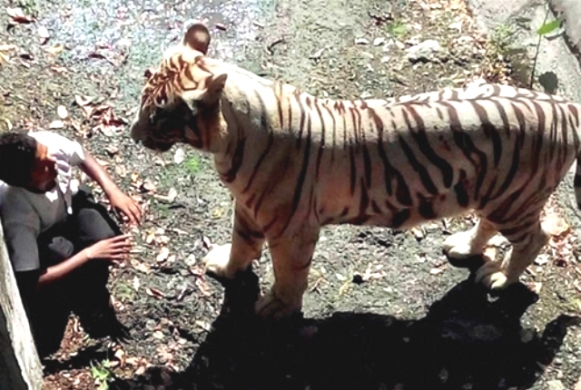 Một thanh niên người Ấn Độ rơi vào chuồng hổ sau khi uống rượu. Người này vô cùng hoảng sợ và đã bị hổ cắn chết trước khi nhân viên bảo vệ vườn thú đến.