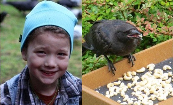 Không chỉ là thức ăn vụn, mà mỗi sáng cô còn đổ nước sạch vào một chiếc máng nhỏ, và đặt đồ ăn như đậu phộng, thức ăn dành cho chó, và những đồ ăn thừa của gia đình cho lũ quạ. Trong khi cô bé bày biện thức ăn, lũ quạ đậu trên đường dây điện chờ đợi và kêu lên thích thú.