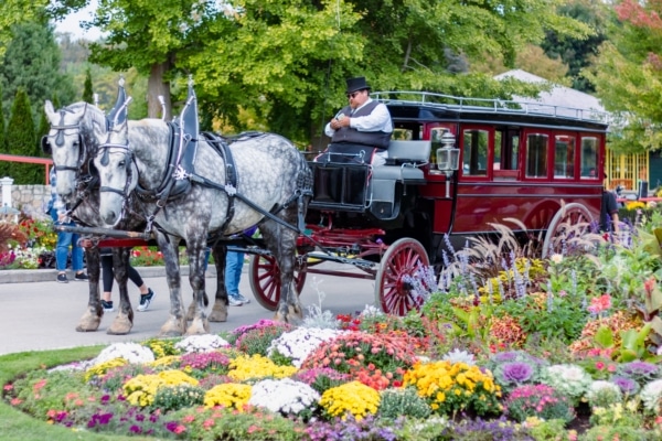 Mặc dù đi xe đạp là phương tiện di chuyển thuận tiện và phổ biến nhất, nhưng xe đạp rõ ràng chỉ đóng vai trò phụ trong giao thông trên đảo. Nếu không có ngựa, đảo Mackinac sẽ không thể trở thành như hôm nay. Khi bạn xuống tàu, nghe thấy tiếng vó ngựa lộp cộp, bạn sẽ có cảm giác như đang vượt thời gian trở lại quá khứ.