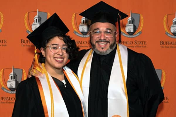Ông Cesar Galarza (41 tuổi) cùng con gái Clarimar của mình vừa tốt nghiệp Đại viện bang Buffalo vào tháng trước, họ đã cùng tham dự lễ tốt nghiệp trực tuyến của trường. Ông Cesar lấy được học vị công tác xã hội, còn con gái Clarimar từ nhỏ đã yêu thích gốm sứ thì tốt nghiệp ngành giáo dục nghệ thuật như mong muốn của mình.