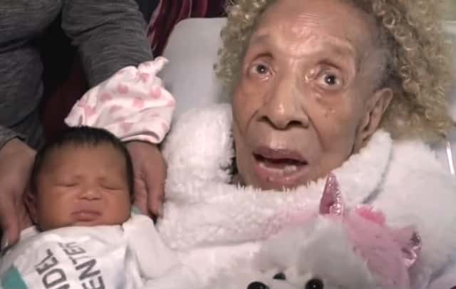 Đoạn clip dưới đây là khoảnh khắc mà cụ Berry lần đầu tiên nhìn thấy chắt gái mới sinh của mình.