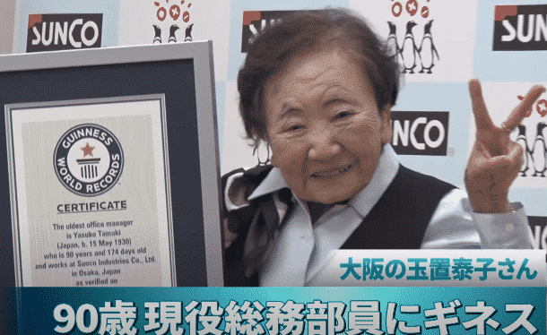 Theo truyền thông Nhật Bản đưa tin, cụ bà Tamaki Yasuko vừa được Kỷ lục Guinness Thế giới công nhận là “Trưởng phòng lớn tuổi nhất thế giới” vào ngày 28/12 vừa qua. Bà phát biểu tại buổi lễ trao bằng chứng nhận rằng: “Tôi rất bất ngờ, tôi nghĩ đây là kết quả tích lũy được theo năm tháng một cách hết sức tự nhiên.”