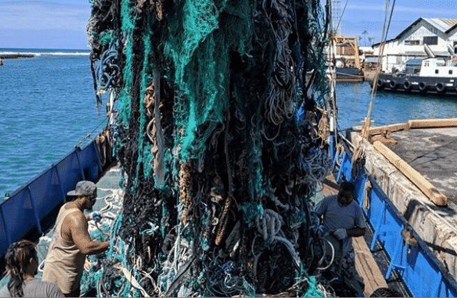 Dù số rác thải này dường như rất nhiều, nhưng trong số đó đa phần là lưới bắt cá mà ngư dân vứt bỏ, những cái lưới này đã cướp đi sinh mạng của các loài sinh vật biển, bao gồm xương của rùa biển bị kẹt trong lưới cá.