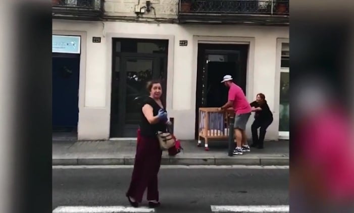 Cặp đôi nhanh chóng đặt các em bé vào cũi rồi lăn chúng ra khỏi tòa nhà một cách an toàn. (Ảnh cắt từ video)