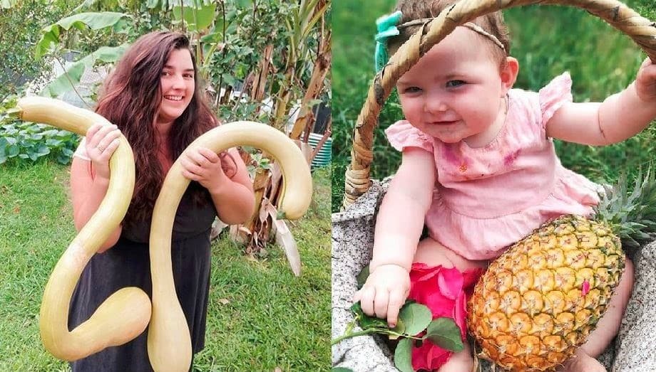 Vùng Brisbane có khí hậu cận nhiệt đới. Tôi trồng khoảng 500 mét vuông vườn ở phía sau nhà và khoảng 400 mét vuông tại nhà của bố mẹ tôi. Tôi trồng tất cả các loại cây ăn được khác nhau, tôi thích thu thập trái cây và rau quả truyền thống. Tôi đã trồng thành công các loại cây ăn quả cho ra sản lượng lớn là xoài, macadamia, na, cam, quả sung, lựu và nhiều loại nữa.