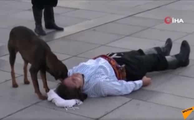 Trong lúc diễn kịch trên đường phố, một người đàn ông Thổ Nhĩ Kỳ đóng vai người bị thương ngã trên mặt đất, không ngờ có một chú chó lang thang đã chạy đến và giúp đỡ. Cảnh tượng khiến người xem cảm thấy rất ấm lòng.