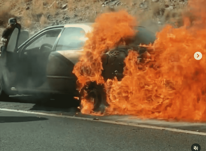 Mới đây, một đôi vợ chồng già đã ngoài 90 ở Mỹ đang lái xe trên đường liên bang thì chiếc xe bất ngờ bốc cháy ngùn ngụt và khói mù mịt, cảnh tượng khi đó vô cùng nguy hiểm. May mắn thay, một số người đi đường đã nhanh chóng cứu họ ra khỏi chiếc xe. Sau đó, hai cụ đã được đưa đến bệnh viện chữa trị và dự kiến sẽ sớm được xuất viện.