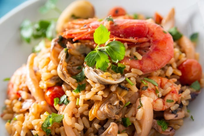 Risotto là món ăn miền Bắc nước Ý, có thể được pha trộn với nhiều loại nguyên liệu. Đặc điểm quan trọng của cơm risotto là được nấu chín chậm trong nước dùng. Nếu nấu chưa tới cơm sẽ bị nát, còn quá lửa cơm sẽ bị khô. Cơm risotto truyền thống được làm từ gạo, rượu vang trắng, phô mai parmesan, bơ và hành tây, nhưng nhiều cửa hàng cũng tự tạo ra công thức mới với nhiều loại nguyên liệu như nấm, tỏi, tôm hùm, tôm và các loại rau khác.