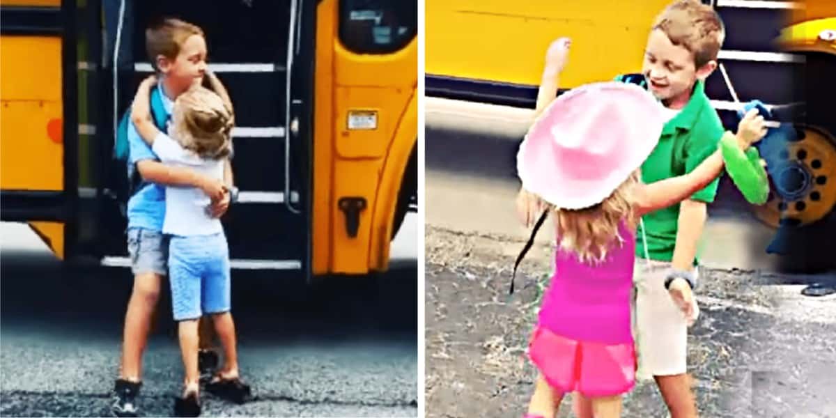Bé gái đứng chờ chiếc xe buýt chở anh trai từ trường về nhà, sau khi anh xuống xe, bé luôn giang rộng vòng tay và chạy tới ôm lấy anh. Cô bé cũng không quên nói lời tạm biệt với tài xế xe buýt.