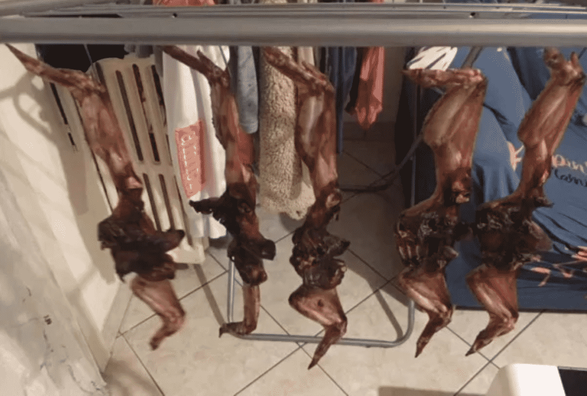 Hôm 11/3, mạng “Thông tin 24” tại Trani của Ý cho biết, buổi sáng cùng ngày, một người dân sống ở khu trung tâm đi ngang một khu nhà chung cư nằm ở vùng lân cận thì bất ngờ phát hiện trên ban công một căn hộ có treo lơ lửng một ít thịt. Quan sát kỹ hơn thì phát hiện những miếng thịt treo có dáng như đôi cánh duỗi ra… nhìn giống con dơi.